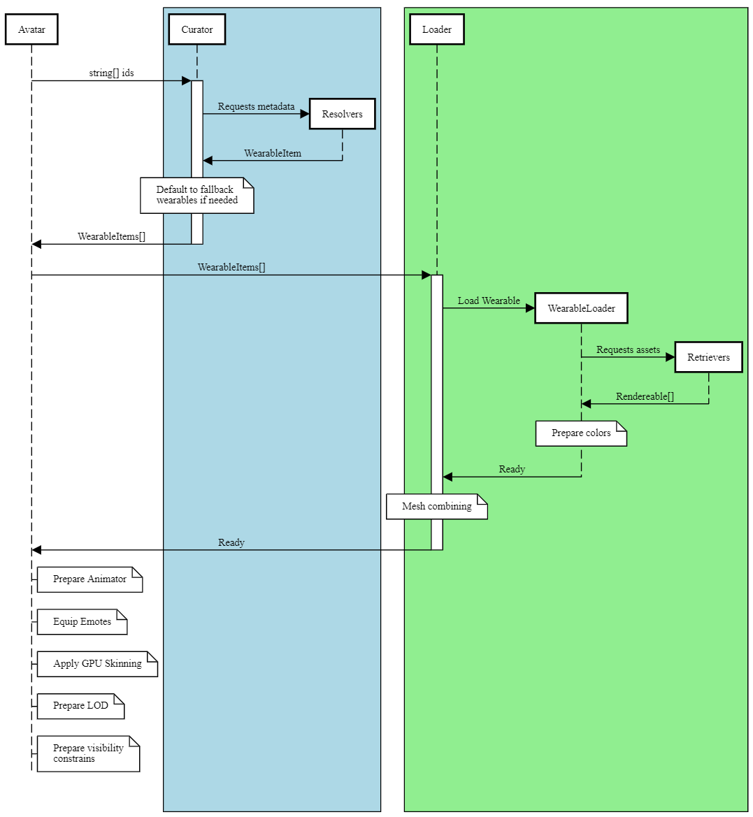 Avatars are a key part of Decentraland, the system behind the curtains in charge of loading and rendering them must be resilient, scalable and performant. This ADR's goal is to give an introduction to the system itself as well as serving as documentation for new contributors.